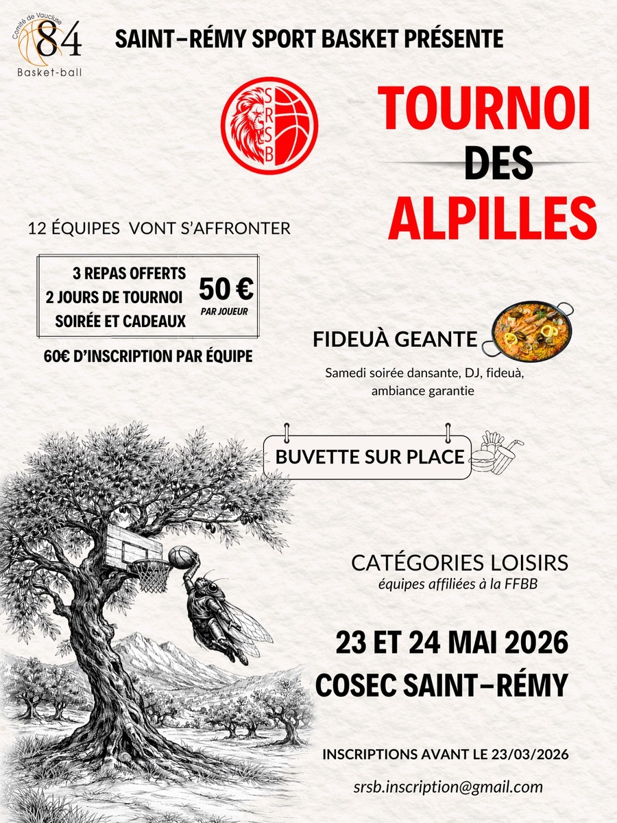 Le Saint-Rémy Sport Basket est fier de vous présenter son grand tournoi loisirs qui aura lieu les 23 & 24 mai 2026 au COSEC de Saint-Rémy-de-Provence ![]()